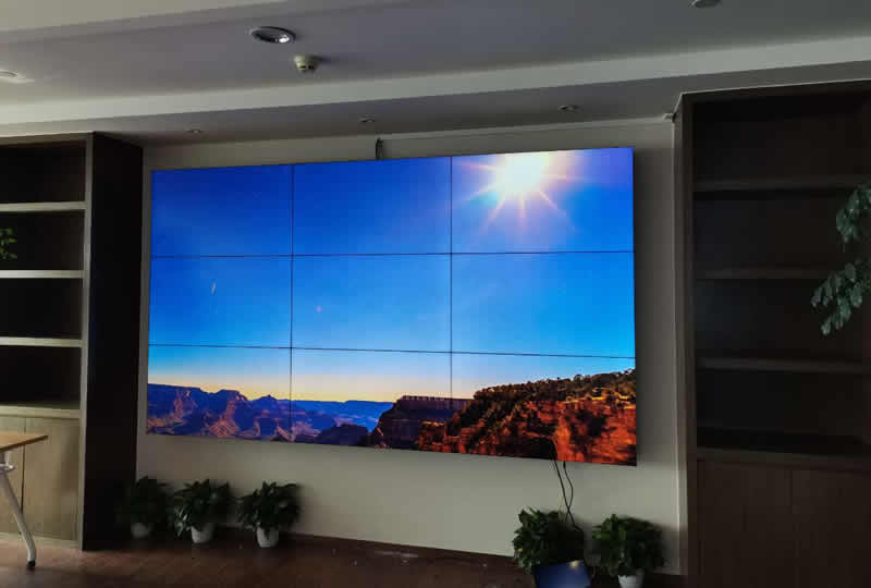 這套會議室顯示屏采用的是3行3列、55寸拼接屏,京東方3.5mm液晶面板,色彩豐富、白平衡效果好,壁掛式安裝,更美觀、簡潔。