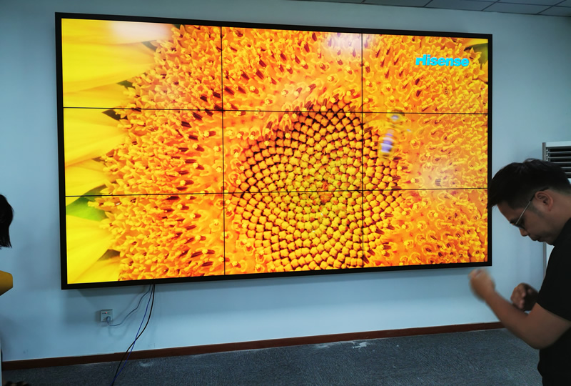 本案例中,維康國際為深圳市航天泛在科技園提供一套會議廳拼接屏,3.5mm拼縫的原裝面板,采用3*3拼接、前維護支架安裝加包邊處理,畫面顯示效果好,色彩鮮艷。