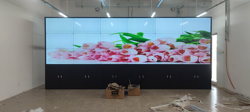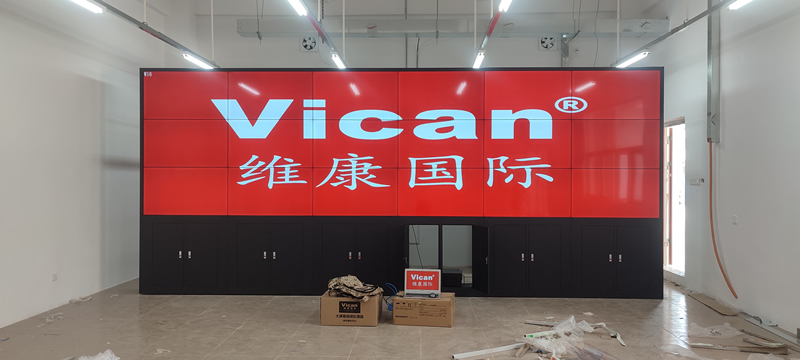 本案例中,維康國際為云浮市郁南西江中學提供一套會議室顯示大屏,采用3*6拼接、49寸3.5mm液晶拼接屏,機柜式安裝,如上圖所示。