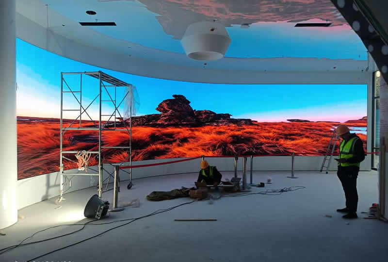 本案例中,維康國(guó)際為濟(jì)南市某企業(yè)展廳提供多套LED顯示屏,如上圖所示,有LED天幕屏、LED圓柱屏、LED平面屏、LED弧形屏,多樣化顯示效果,畫(huà)面清晰,視覺(jué)震撼。