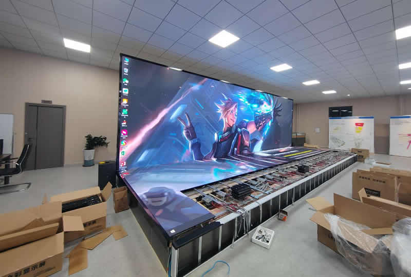 本案例中,維康國際為揭陽市某企業(yè)形象展廳提供一套雙面LED顯示屏,采用90度內(nèi)折安裝,如上圖所示,大屏幕顯示清晰,色彩豐富。