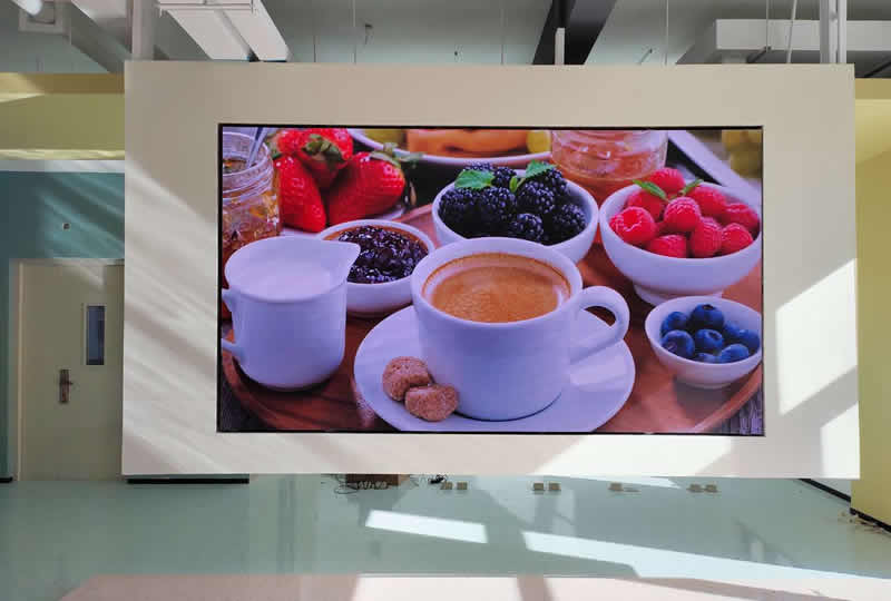 本案例中,維康國際為山西晉中某企業(yè)提供一套展廳LED顯示屏,采用P1.25的COB顯示屏,高清顯示,畫質(zhì)清晰,懸掛式安裝,具有很好的視覺體驗效果。