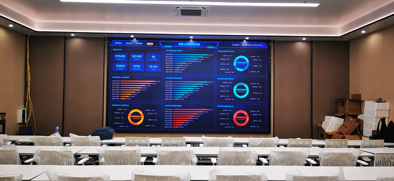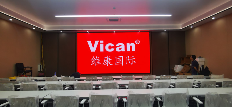 本案例中,維康國際為惠州市某科技公司提供一套會(huì)議LED大屏,采用P1.86COB小間距LED系列,大屏幕約15平方,顯示清晰、色彩豐富,一體化顯示效果很好。