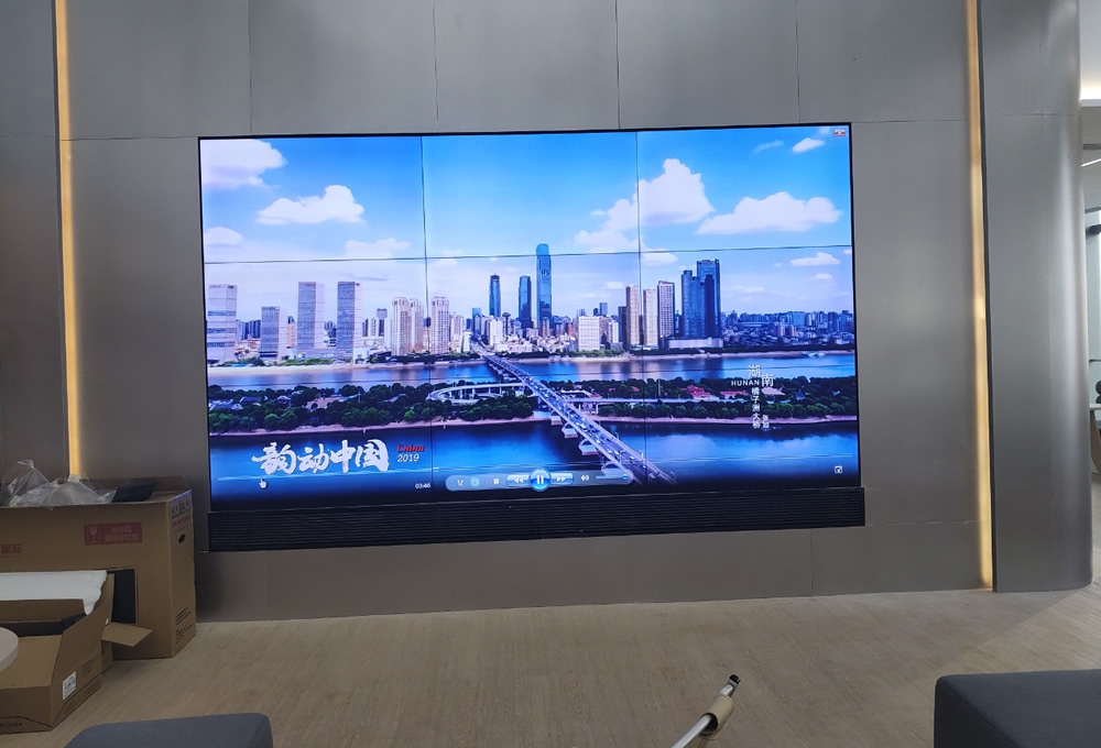 本案例中,采用的是3x3拼接、55寸0.88mm高清液晶拼接屏,高清畫(huà)質(zhì)、超小拼縫,視覺(jué)效果出眾。