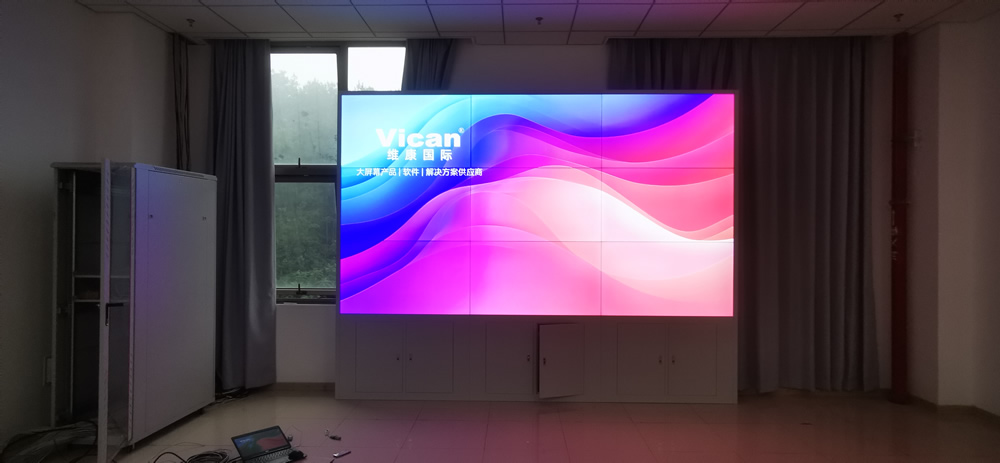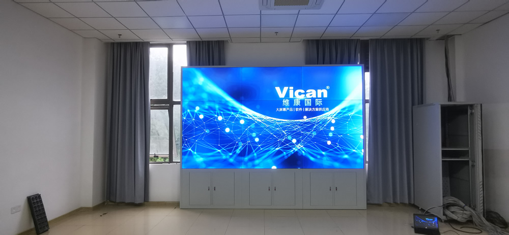該項(xiàng)目中,維康國(guó)際為深圳市某企業(yè)提供了5套高清液晶大屏,采用0.88mm拼縫的高清晰液晶拼接屏,3x3拼接方式,高清畫(huà)質(zhì),超小拼縫,大屏幕畫(huà)面一體化顯示效果很好。