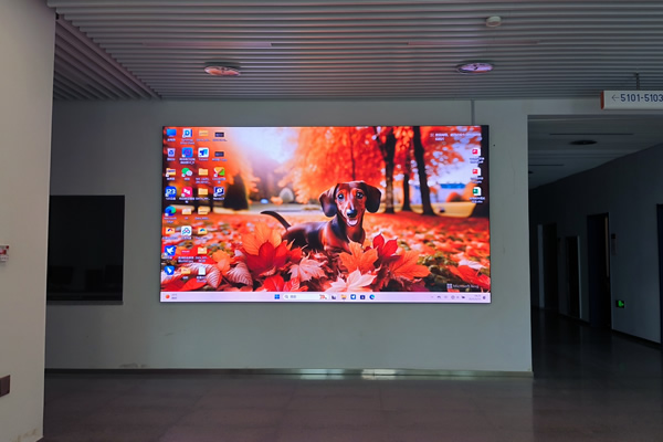 采用模塊化顯示單元(LED顯示屏 / 液晶拼接屏)構(gòu)建標準矩形陣列,常見的液晶拼接屏規(guī)格包括 2×2、3×3、4×4 等組合模式,而LED顯示屏的模組尺寸小,拼接更靈活。在政府會議中心、企業(yè)報告廳等場景中,該方案通過統(tǒng)一的邊框設(shè)計與色彩校準,實現(xiàn) PPT 演示、視頻播放等內(nèi)容的高清展示。其優(yōu)勢在于工程實施難度低、維護成本可控。一般情況下,LED顯示屏比較適用于以單一內(nèi)容展示為主的傳統(tǒng)會議場景;在異形畫面展示、多源信息分屏呈現(xiàn)時液晶拼接屏更適合。