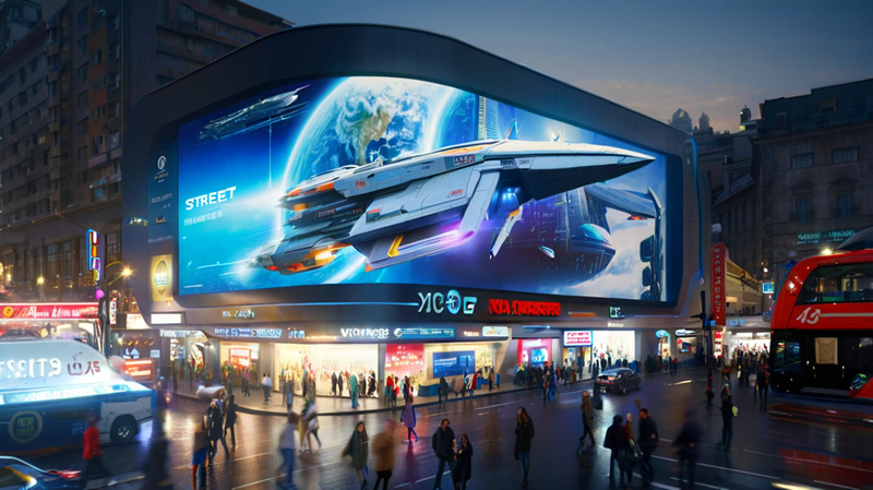 重慶觀音橋商圈的裸眼 3D 屏擁有超高清 LED 巨幕,面積達(dá) 3788 平方米。其播放的內(nèi)容以科幻場景為主,如一艘神秘的大型太空飛船從大樓里緩緩駛出,并圍繞大樓旋轉(zhuǎn)飛行,市民無需任何設(shè)備,僅通過裸眼就能感受到逼真震撼的 3D 視覺效果。當(dāng)太空飛船艙門打開時(shí),屏幕所在的墻體仿佛被掀開一個(gè)洞,讓觀眾產(chǎn)生身臨其境的感覺。后來推出的 2.0 版內(nèi)容,運(yùn)用先進(jìn)的 3D 建模技術(shù),結(jié)合重慶 “輕軌穿樓” 的經(jīng)典場景,進(jìn)行創(chuàng)意解讀,進(jìn)一步增強(qiáng)了內(nèi)容與城市特色的關(guān)聯(lián)性。在技術(shù)實(shí)現(xiàn)上,該屏幕具備高亮度、高對比度等特點(diǎn),即使在戶外強(qiáng)光環(huán)境下,畫面依然清晰可見,色彩鮮艷。從這個(gè)案例可以看出,深度挖掘城市特色元素,并運(yùn)用先進(jìn)的 3D 建模和顯示技術(shù)將其呈現(xiàn)出來,能夠打造出具有強(qiáng)烈地域特色和吸引力的裸眼 3D 顯示屏;同時(shí),不斷更新和優(yōu)化內(nèi)容,保持新鮮感,也是吸引觀眾持續(xù)關(guān)注的關(guān)鍵。