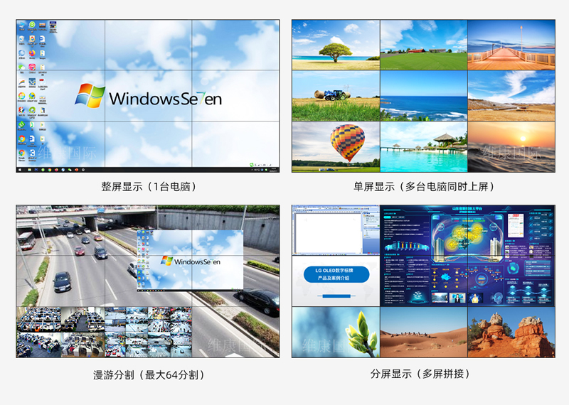 京東方65寸液晶拼接屏拼接后可以整屏顯示、單屏顯示、分割漫游、疊加顯示等。適合應(yīng)用于監(jiān)控顯示、會議等大屏系統(tǒng)中。