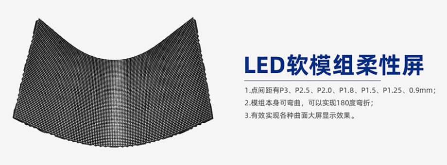 LED軟模組是一種柔性模組,表面覆膜屏幕,可以拼接成各種弧形顯示屏幕,它與常規(guī)LED模組的主要區(qū)別就是它的模組可彎曲,可以拼接成任何形狀的顯示屏。