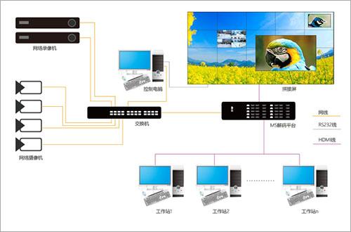 我們在前期設計方案時還要考慮到一系列的問題,包括前端的監(jiān)控攝像機、傳輸、解碼平臺、大屏拼接數(shù)量等,只有綜合所有的設備發(fā)揮各自的功能才可以實現(xiàn)用戶想要的顯示效果。
