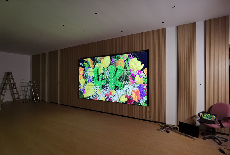該案例是維康國(guó)際為廣西北海全友家居提供的有一套展廳LCD拼接屏,采用3行3列的55寸液晶拼接屏,雙邊拼縫為3.5mm,如上圖所示,畫(huà)面顯示清晰亮麗,拼縫較小,有著較好的大屏畫(huà)面一體化顯示效果。