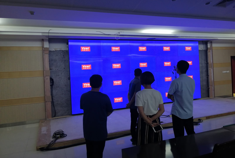 本案例中,維康國際為蓬萊電業(yè)大夏提供一套展廳LCD拼接屏,采用4x5拼接、55寸0.88mm液晶拼接屏,超窄邊設計,畫面清晰亮麗,一體化顯示效果非常好,如上圖所示。