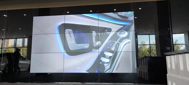 本案例中,維康國際為寧德市某汽車4S店提供一套展廳顯示大屏,采用3x拼接、55寸液晶拼接屏,雙邊拼縫為3.5mm,大屏幕顯示清晰、拼縫小、白平衡效果好,有著很好的視覺體驗效果。