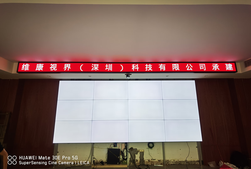 本案例中,維康國(guó)際為陽(yáng)江市某財(cái)政局提供一套顯示大屏,采用3x4拼接55寸液晶拼接屏,超窄邊LG液晶面板,雙邊拼縫僅有0.88mm,不僅畫(huà)面顯示清晰,而且一體化效果也很好,如上圖所示。