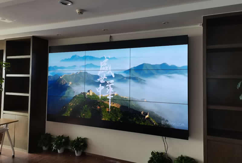 這套會議室顯示屏采用的是3行3列、55寸拼接屏,京東方3.5mm液晶面板,色彩豐富、白平衡效果好,壁掛式安裝,更美觀、簡潔。