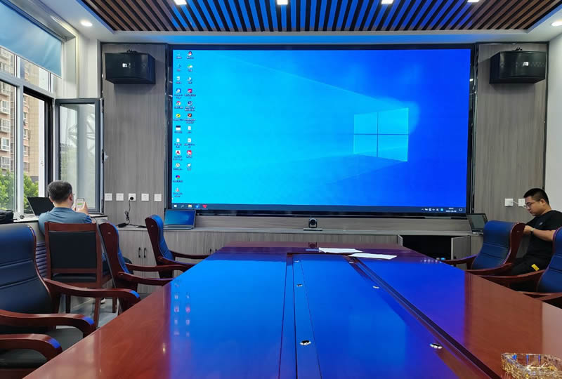 本案例中,維康國際為聊城市某水利局提高一套會議室LED大屏,如上圖所示,大屏幕顯示清晰,一體化顯示效果好。