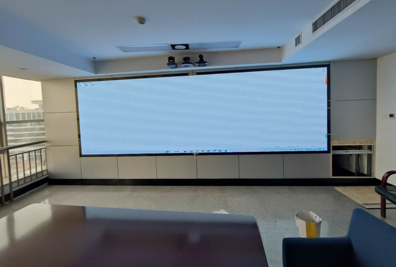 本案例中,維康國際為濟(jì)南市高新區(qū)管理委員會提供了一套會議室LED大屏,如上圖所示,大屏幕顯示清晰,亮度適中,一體化顯示效果好。
