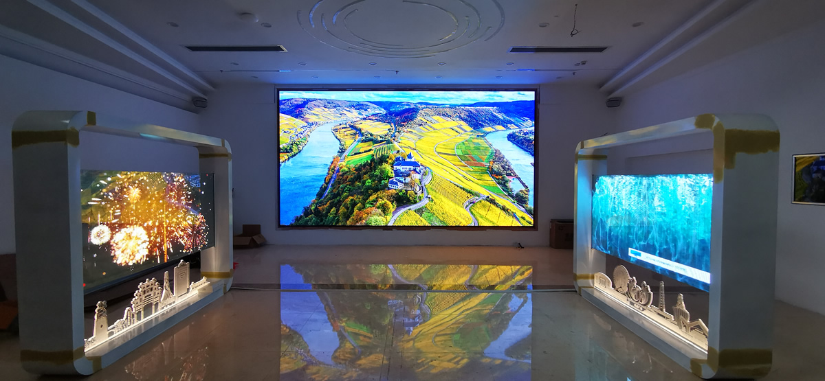 本案例中,維康國際為清遠(yuǎn)市煙草局展覽廳提供多套LED顯示屏,由P2全彩LED顯示屏和LED透明屏組成,如上圖多是,大屏幕顯示清晰,色彩豐富,視覺體驗(yàn)效果好。