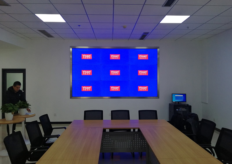 本案例的大屏,是維康國際為濰坊聯(lián)通提供了3x3拼接、55寸無縫液晶拼接屏,主要用來做辦辦會議顯示使用。