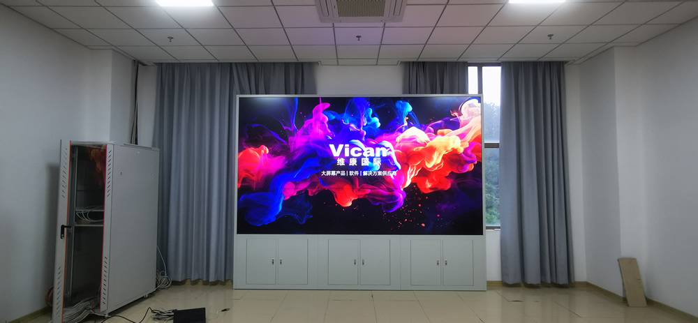該項(xiàng)目中,維康國(guó)際為深圳市某企業(yè)提供了5套高清液晶大屏,采用0.88mm拼縫的高清晰液晶拼接屏,3x3拼接方式,高清畫(huà)質(zhì),超小拼縫,大屏幕畫(huà)面一體化顯示效果很好。