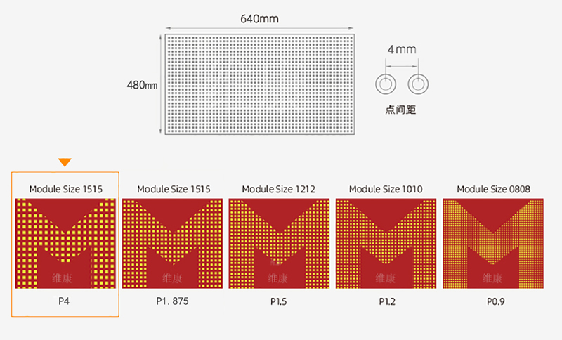 采用行業(yè)壓鑄鋁箱體,設(shè)計(jì)精度高,平整度高。箱體尺寸為640×480/(mm),模組尺寸寬320×高160mm,箱體重量7kg,亮度600~800cd/m2可調(diào),像素點(diǎn)間距4mm。
