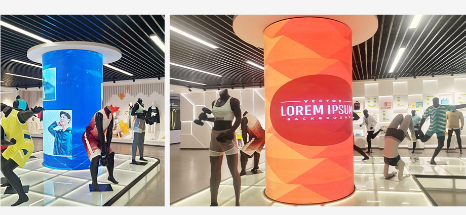 有一些展廳,由于圓柱比較大,所以還可以打造多組LED顯示屏,下圖就是安裝在某集團展廳的一組采用P1.86的軟模組組成的圓弧形LED顯示屏效果,整個弧形更加自然。